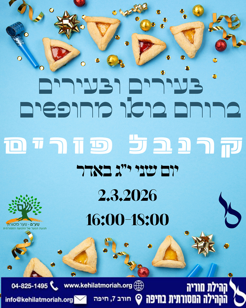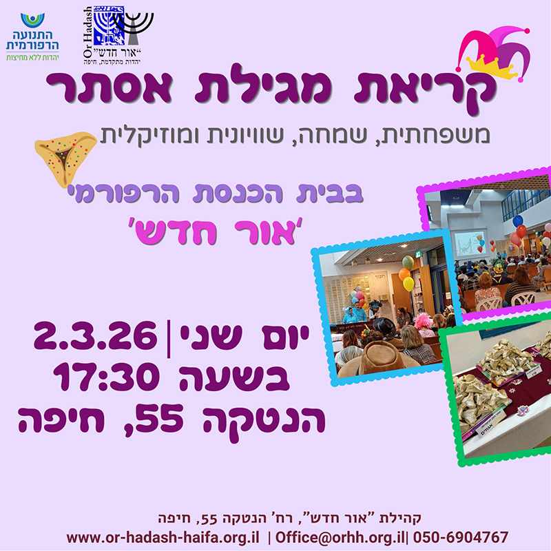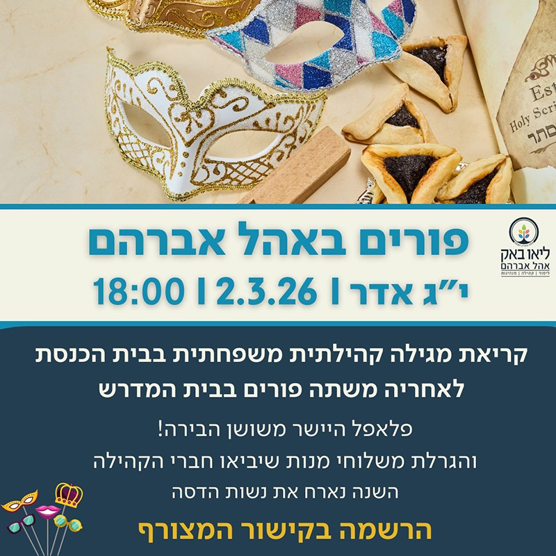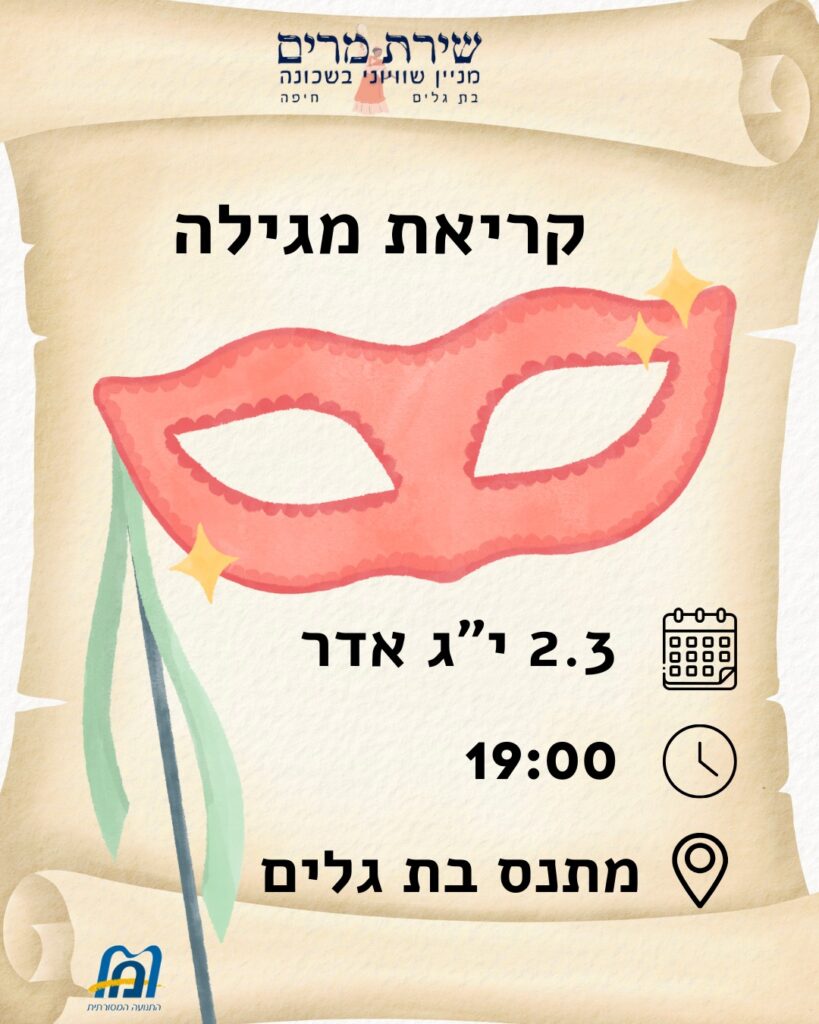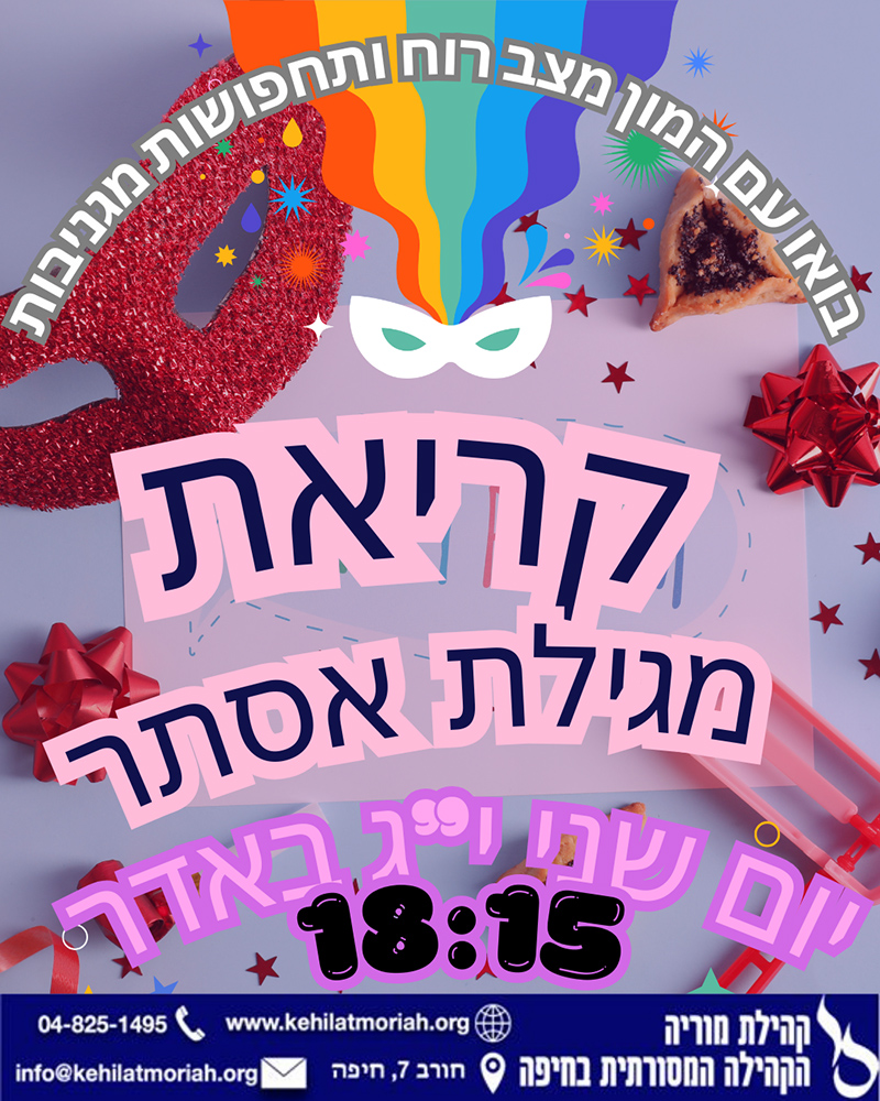 קריאת מגילת אסתר משפחתית, מוזיקלית וחגיגית. מתאים למשפחות, לצעירים ולמבוגרים